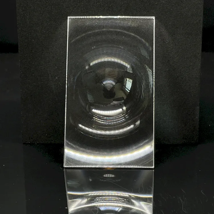 Functions Fresnel lenses perform beam collimation and focusing: 1. Convert point sources into parallel light, significantly enhancing edge brightness of display panels while eliminating sunspot effects and improving overall brightness uniformity2. Typically used with other optical components (e.g. cylindrical lenses)3. Removing collimation lenses causes substantial light loss through panels, resulting in noticeable hotspots and reduced edge brightness4. On the reverse side of LCD screens, light must be converged from panels to projection lenses