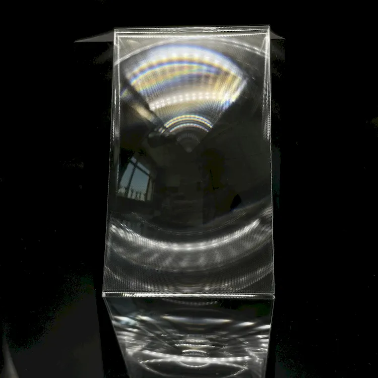 Functions Fresnel lenses perform beam collimation and focusing: 1. Convert point sources into parallel light, significantly enhancing edge brightness of display panels while eliminating sunspot effects and improving overall brightness uniformity2. Typically used with other optical components (e.g. cylindrical lenses)3. Removing collimation lenses causes substantial light loss through panels, resulting in noticeable hotspots and reduced edge brightness4. On the reverse side of LCD screens, light must be converged from panels to projection lenses