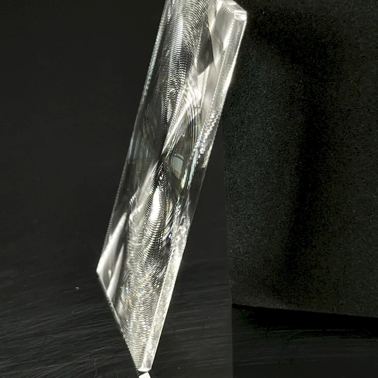 Functions Fresnel lenses perform beam collimation and focusing: 1. Convert point sources into parallel light, significantly enhancing edge brightness of display panels while eliminating sunspot effects and improving overall brightness uniformity2. Typically used with other optical components (e.g. cylindrical lenses)3. Removing collimation lenses causes substantial light loss through panels, resulting in noticeable hotspots and reduced edge brightness4. On the reverse side of LCD screens, light must be converged from panels to projection lenses
