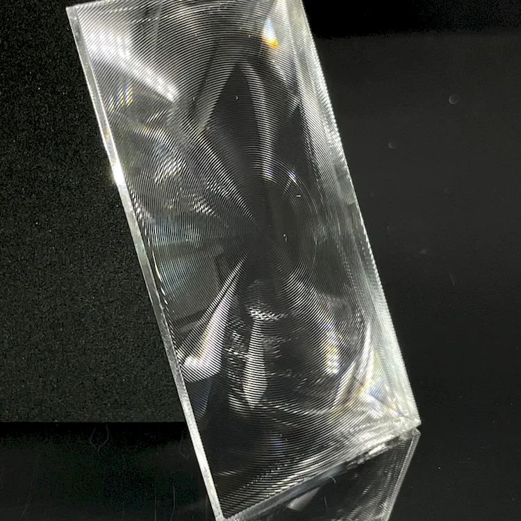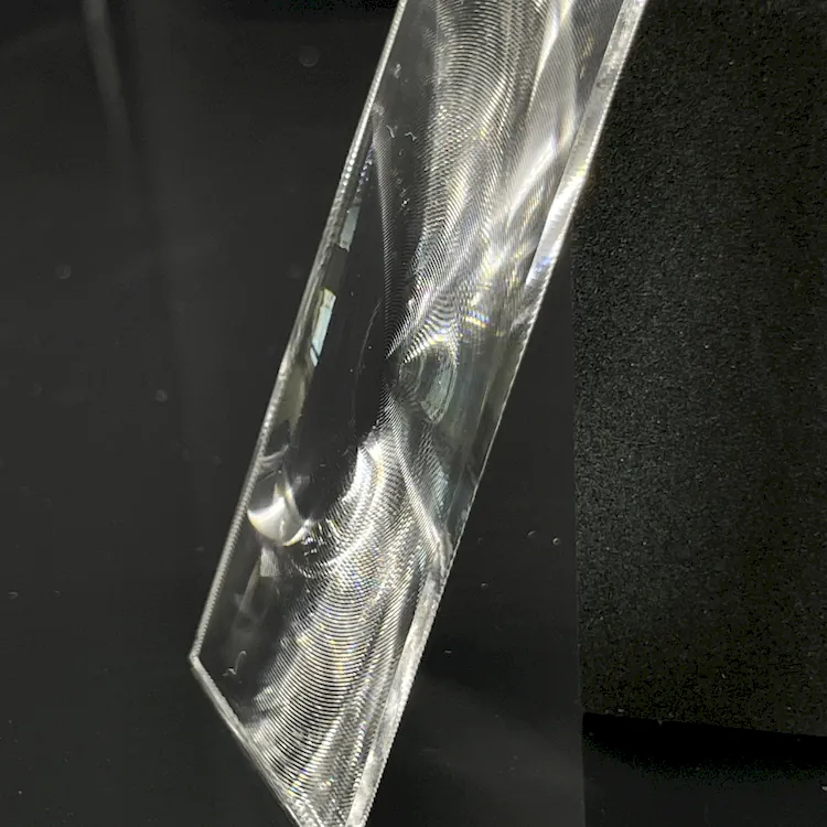 Functions Fresnel lenses perform beam collimation and focusing: 1. Convert point sources into parallel light, significantly enhancing edge brightness of display panels while eliminating sunspot effects and improving overall brightness uniformity2. Typically used with other optical components (e.g. cylindrical lenses)3. Removing collimation lenses causes substantial light loss through panels, resulting in noticeable hotspots and reduced edge brightness4. On the reverse side of LCD screens, light must be converged from panels to projection lenses
