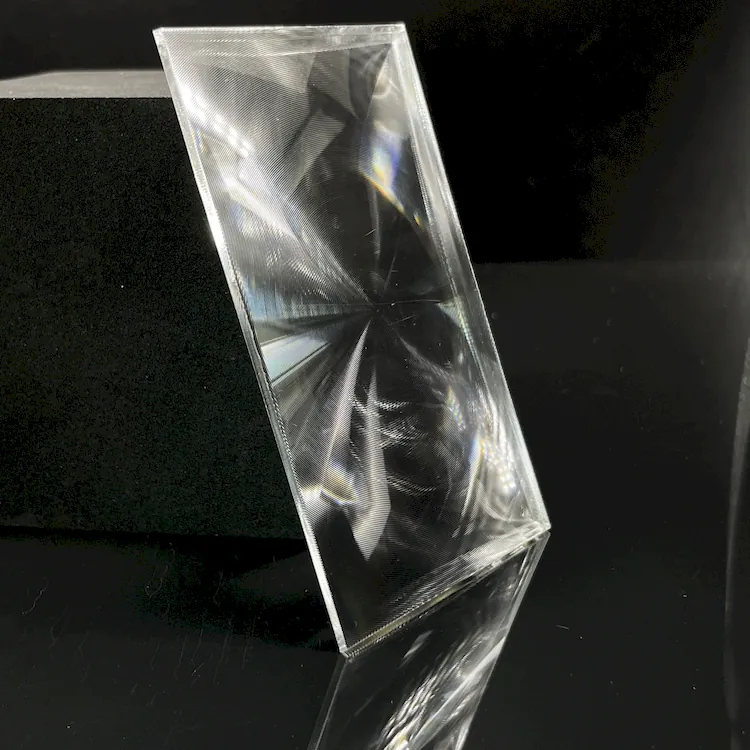 Functions Fresnel lenses perform beam collimation and focusing: 1. Convert point sources into parallel light, significantly enhancing edge brightness of display panels while eliminating sunspot effects and improving overall brightness uniformity2. Typically used with other optical components (e.g. cylindrical lenses)3. Removing collimation lenses causes substantial light loss through panels, resulting in noticeable hotspots and reduced edge brightness4. On the reverse side of LCD screens, light must be converged from panels to projection lenses