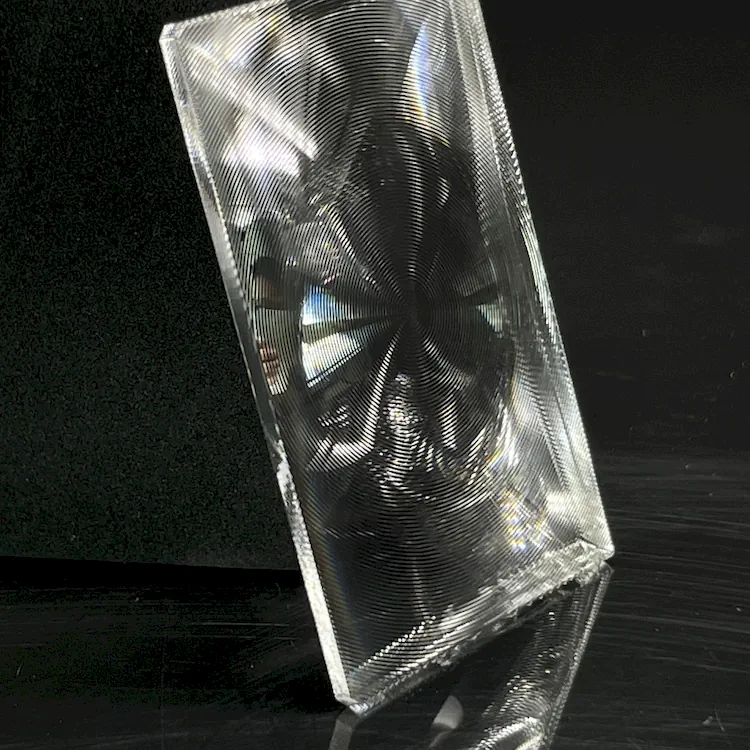Functions Fresnel lenses perform beam collimation and focusing: 1. Convert point sources into parallel light, significantly enhancing edge brightness of display panels while eliminating sunspot effects and improving overall brightness uniformity2. Typically used with other optical components (e.g. cylindrical lenses)3. Removing collimation lenses causes substantial light loss through panels, resulting in noticeable hotspots and reduced edge brightness4. On the reverse side of LCD screens, light must be converged from panels to projection lenses