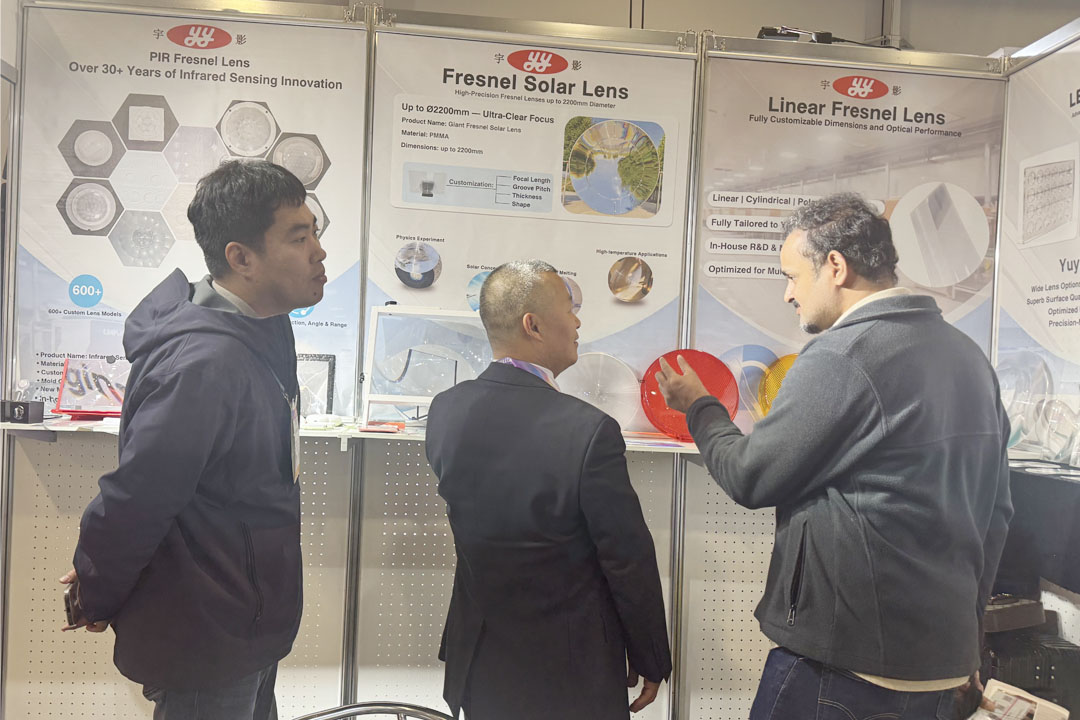 With over 30 years of expertise in Fresnel optics manufacturing, Yuying Optical showcased a comprehensive portfolio including Solor Fresnel Lens, PIR Fresnel lenses for motion sensing, LED and projection Fresnel lenses, precision optical components for display systems, and Fresnel-based magnification solutions. These products address a wide range of applications such as smart sensing, consumer electronics, industrial vision, display projection, and everyday visual assistance.